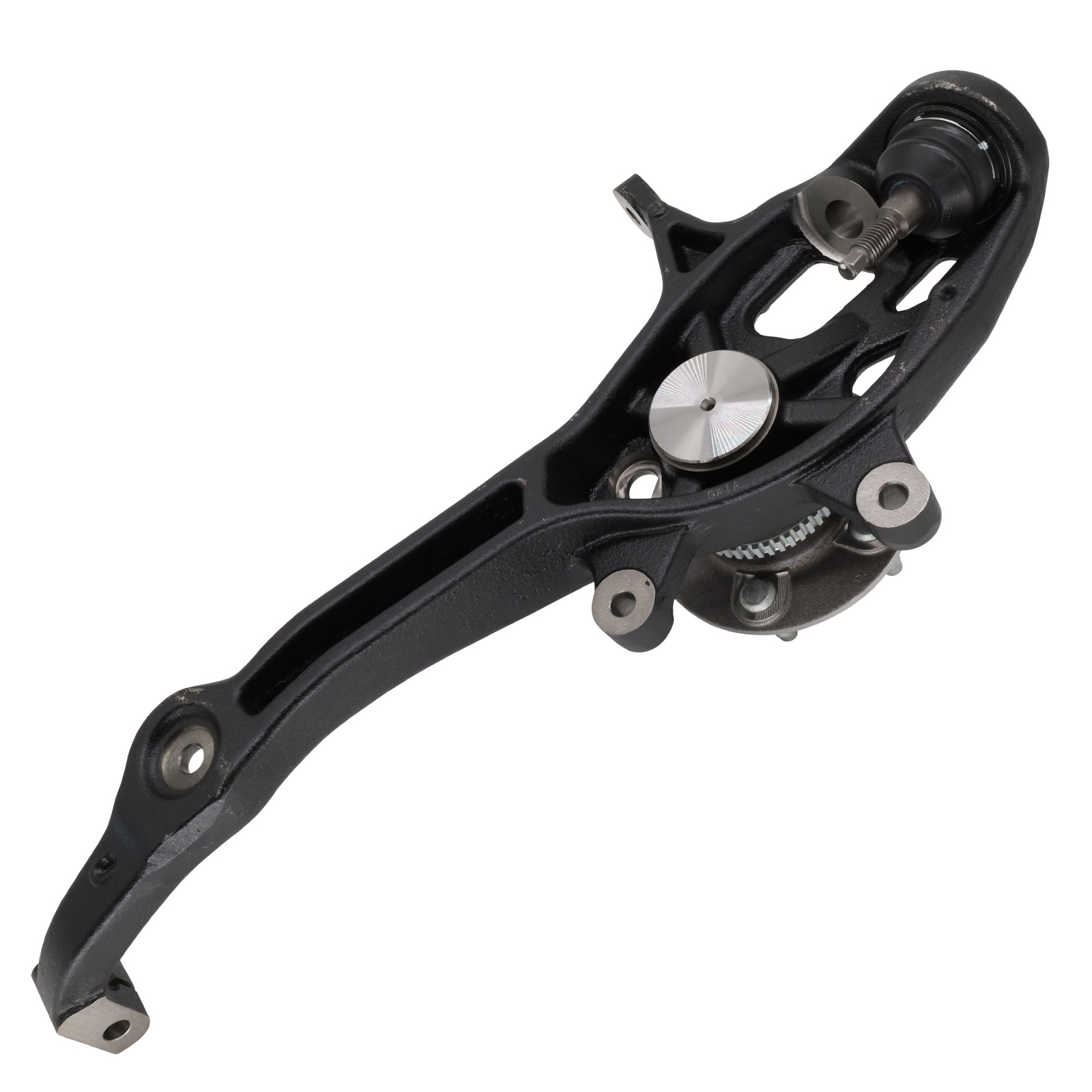 The left front stub axle connects the wheel hub to the suspension, allowing for precise wheel alignment and efficient handling.